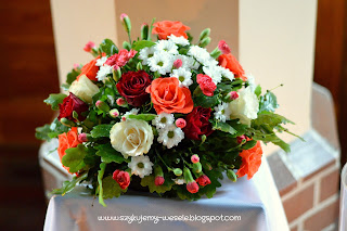 Oto migawki ze skromnego wystroju kościoła na ślub, którego motywem przewodnim była biel i czerwień: